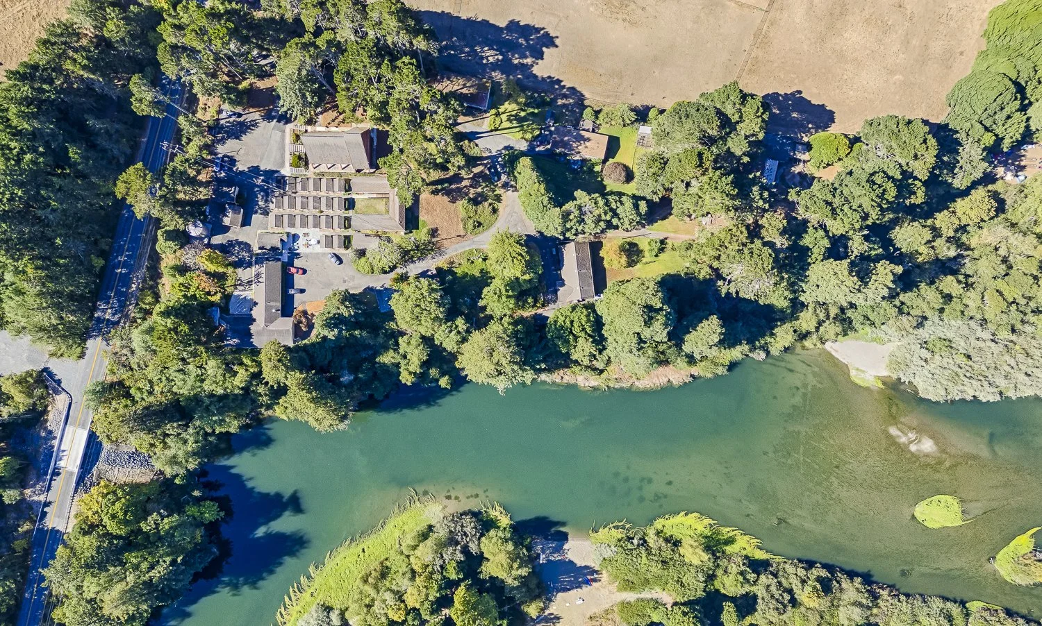 Set above a broad bend of the Russian River, the site is shaped by redwood forest, open clearings, and proximity to the water. From its earliest descriptions, the property was noted for its quiet beauty, natural enclosure, and suitability for reflection—qualities that continue to define its character today.